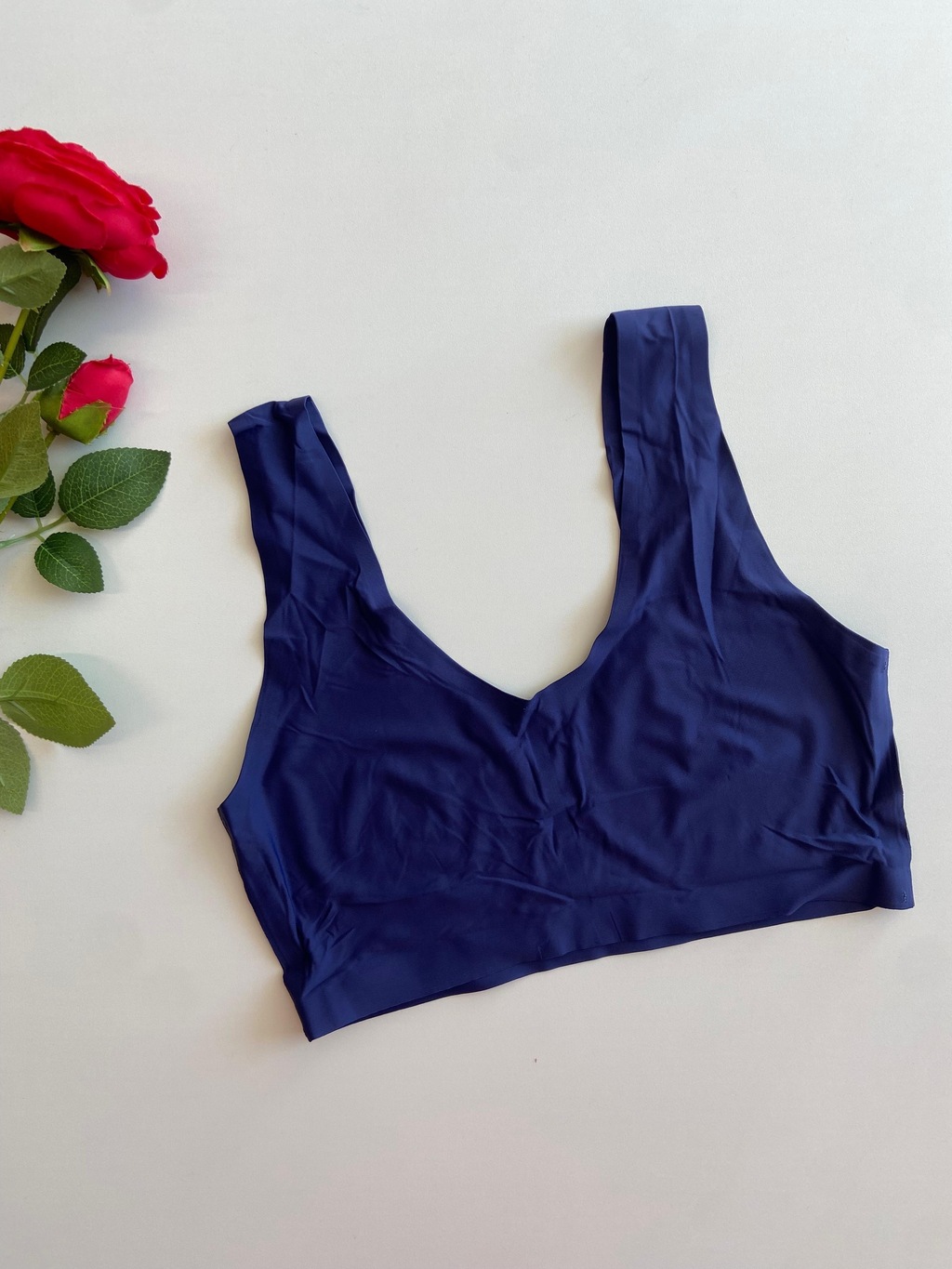 - Alças largas e ajustadas que não marcam a pele, proporcionando sustentação ideal sem necessidade de bojo ou aro.